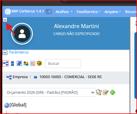 Para acessar existem duas formas. A primeira é abrindo a área de usuário no topo esquerdo do sistema